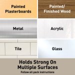 - Designed for: Painted Drywall, Finished Wood, Metal, Acrylic, Tile, Glass