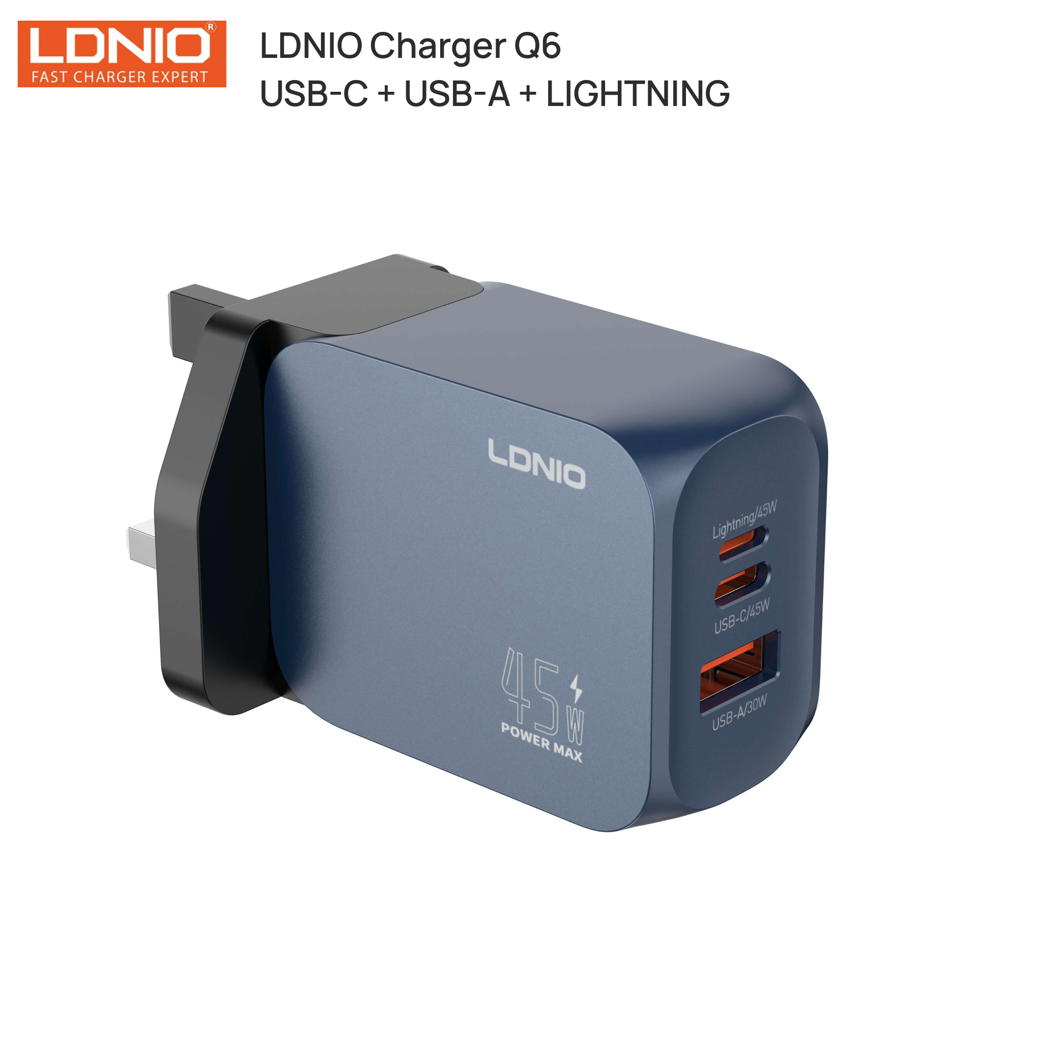Product: LDNIO Charger- (Q6) 45W USB-C + USB-A + Lightning