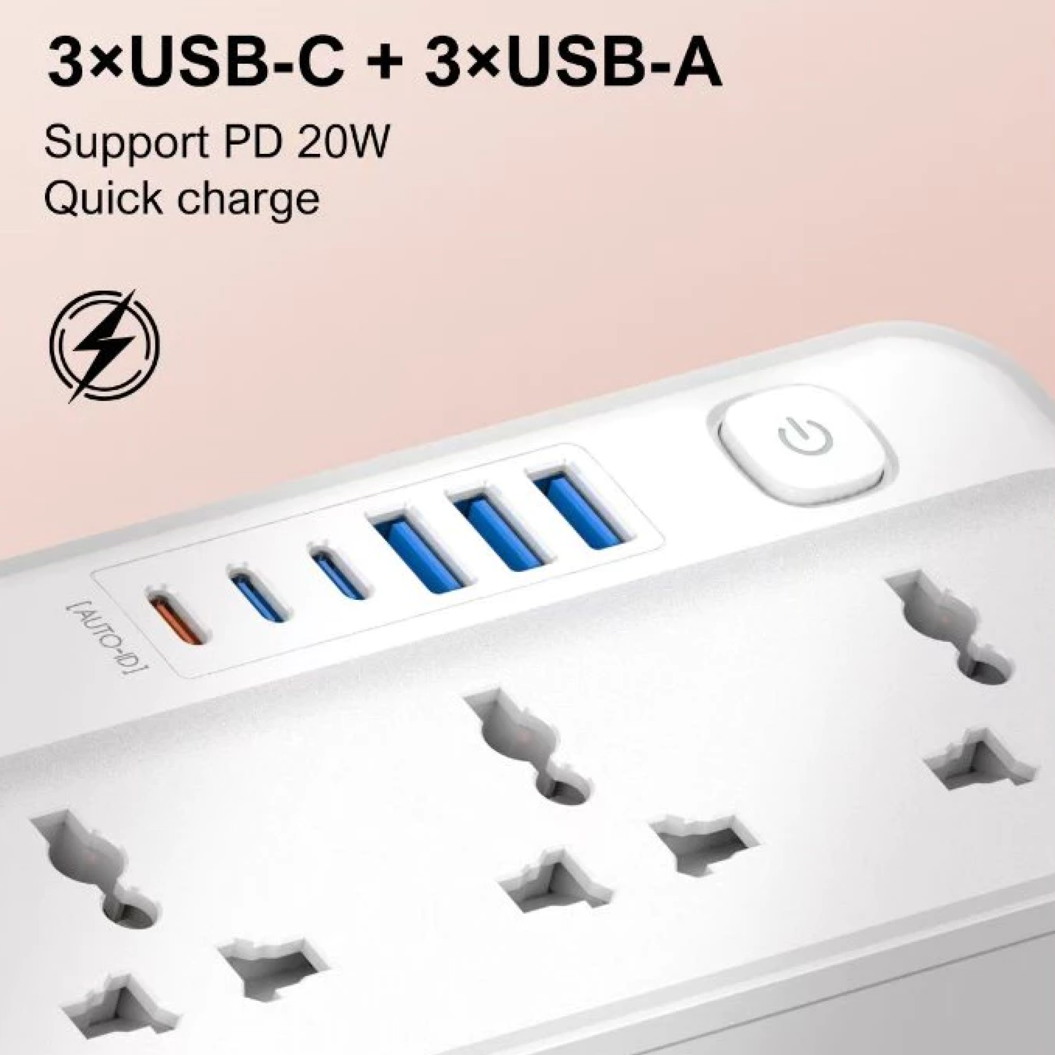 Output: 5 Universal Socket, 3 USB-A, 3 USB-C